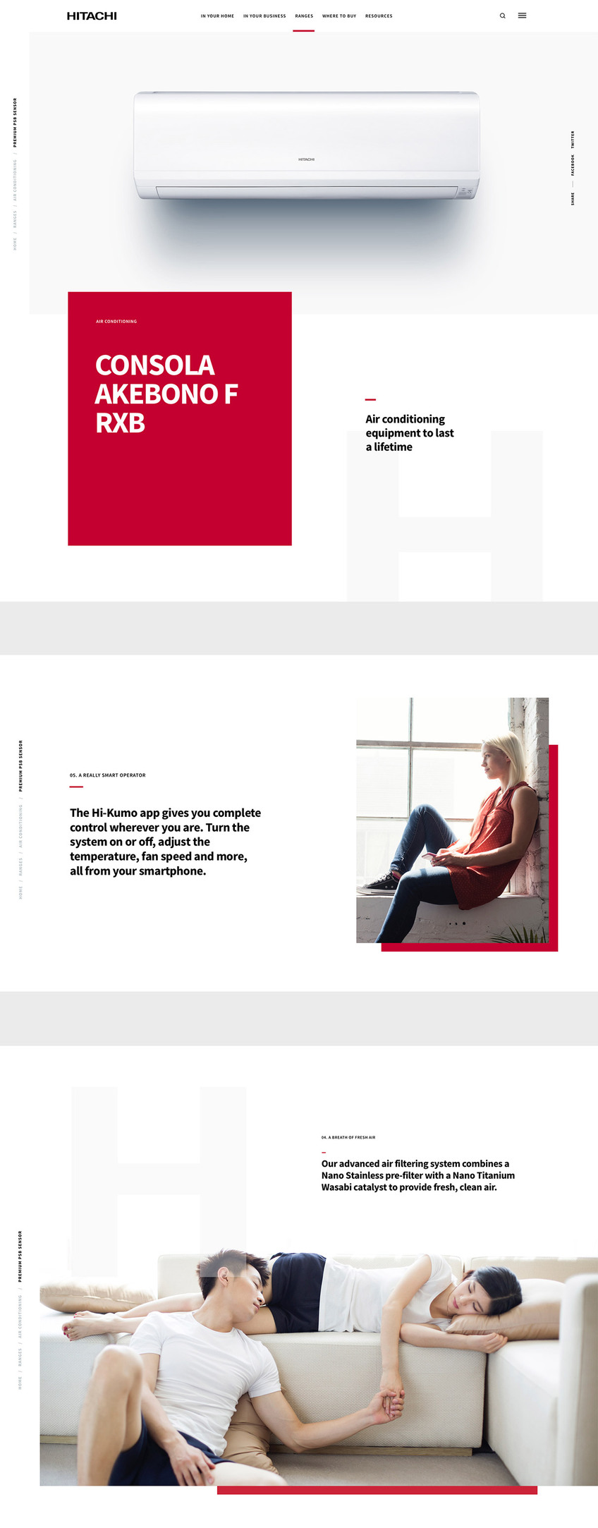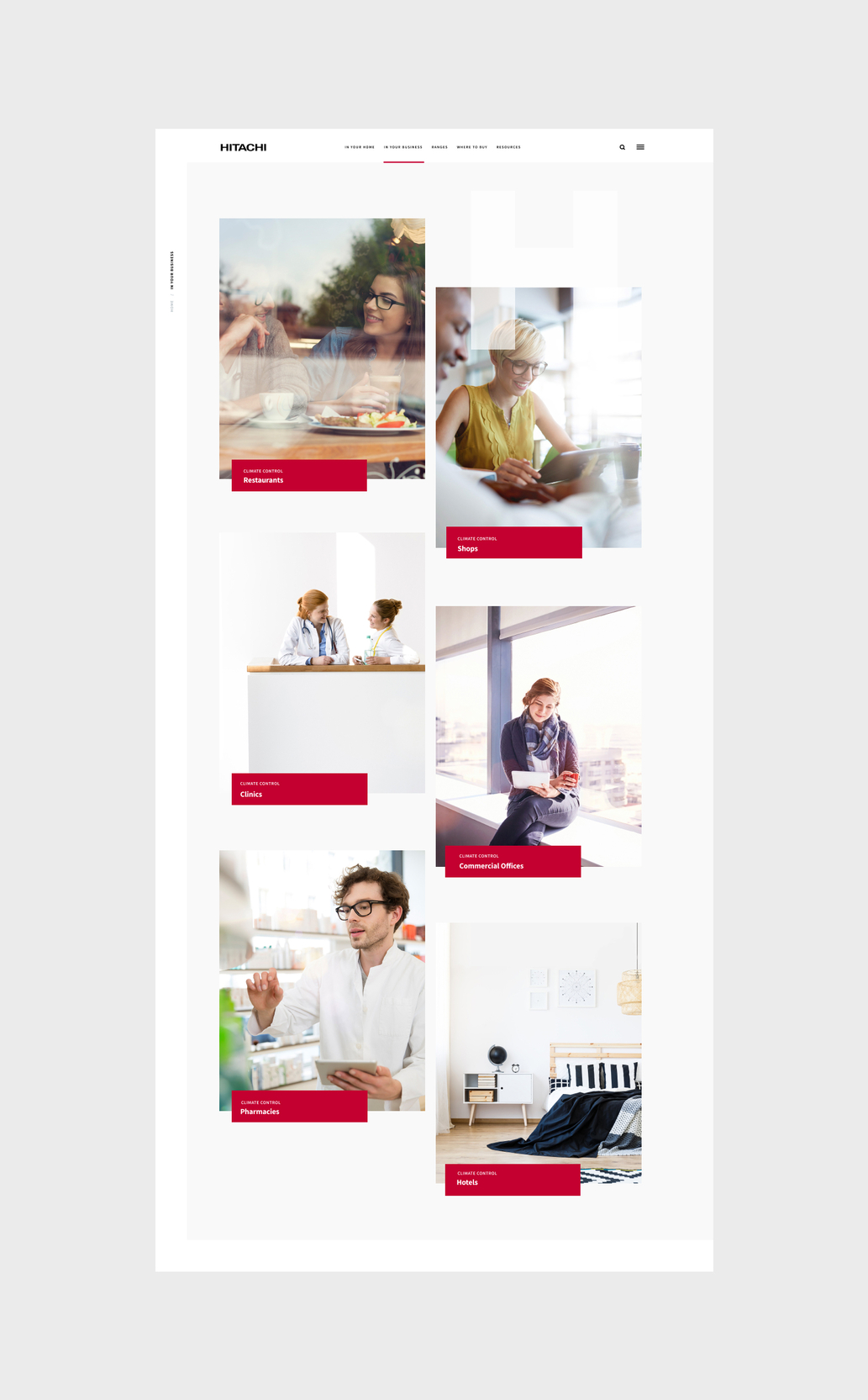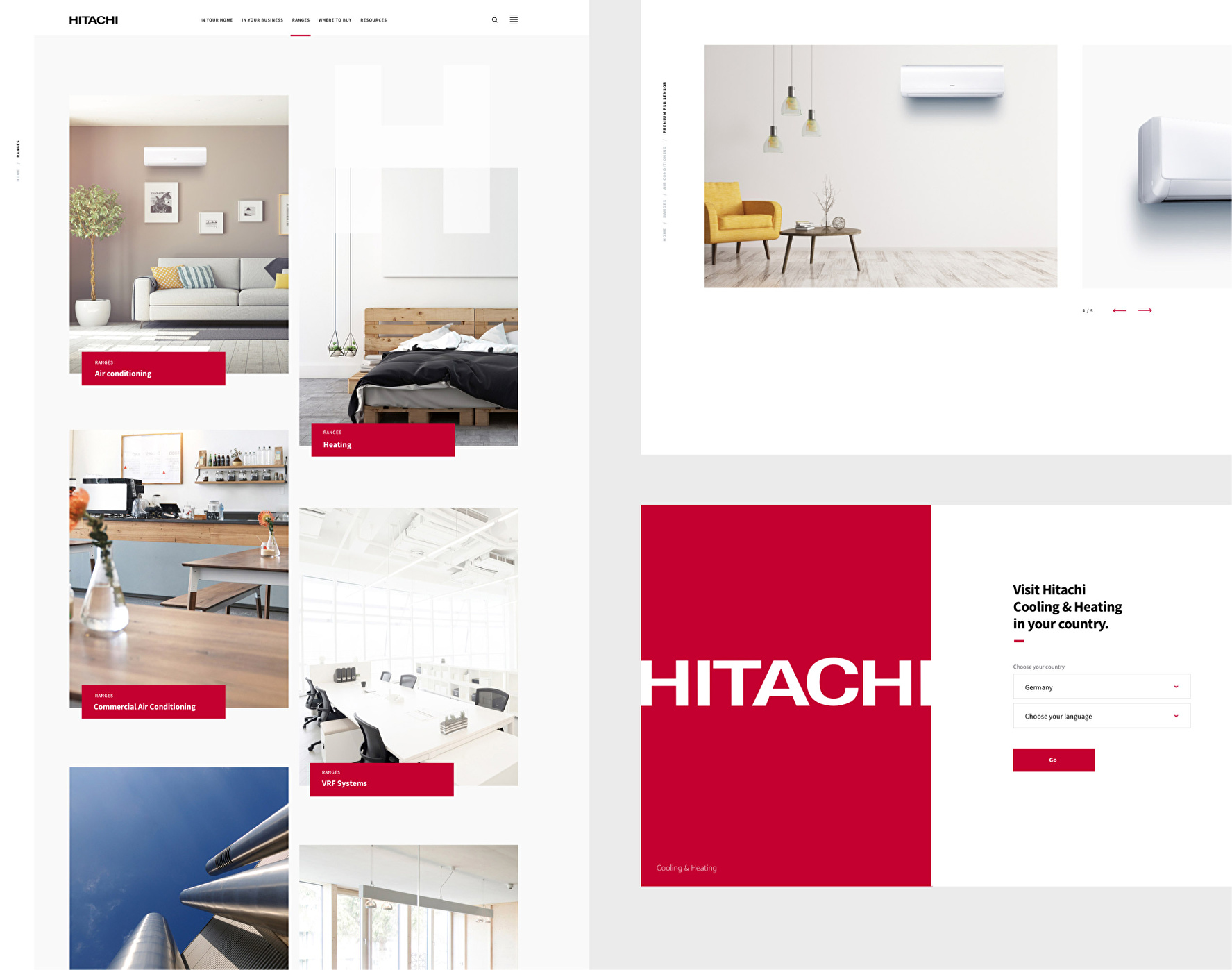 The global website would effectively launch the new Hitachi Cooling & Heating brand. The design had to be an instantly recognisable expression of the new identity, and yet be easily adaptable for local markets.