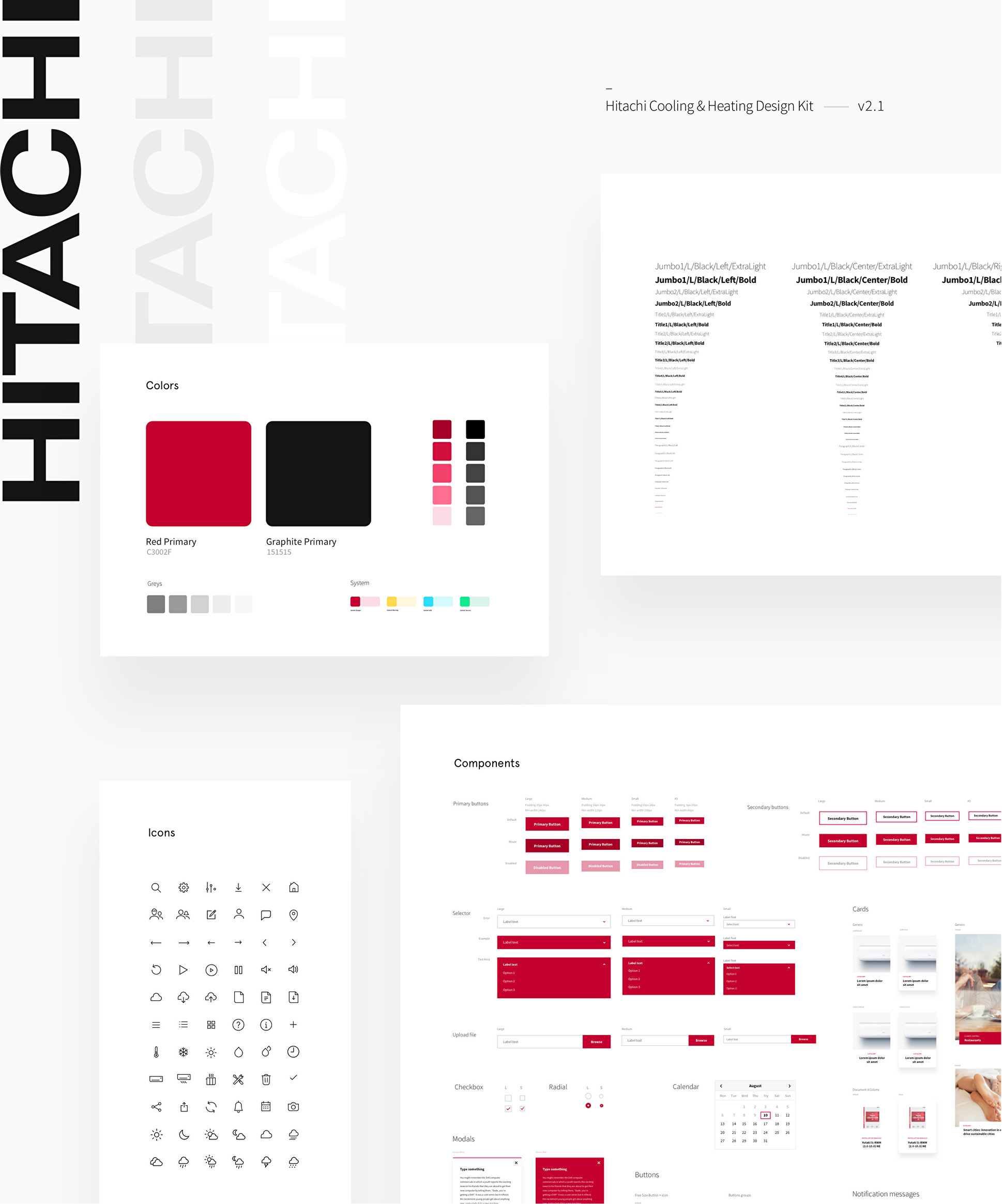 We created a dedicated online style guide for developers, designers, copywriters and anyone working on a Hitachi Cooling & Heating website. In covers everything from colors and typography, through how to build pages, to the tone of voice.
